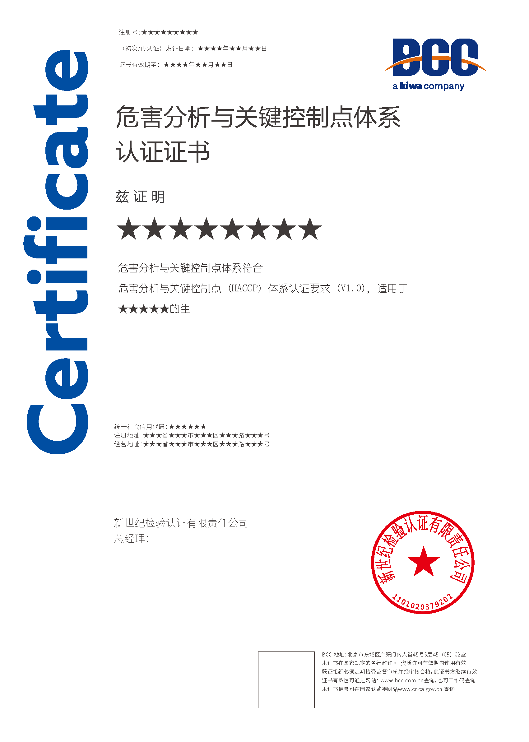 本頁涉及的認(rèn)證服務(wù)中均有對(duì)應(yīng)的《認(rèn)證實(shí)施規(guī)則》,BCC擁有其最終解釋權(quán)。任何組織及個(gè)人未經(jīng)BCC許可,不得以任何形式全部或部分使用(法律要求除外)認(rèn)證相關(guān)信息。如需獲取相關(guān)實(shí)施規(guī)則請(qǐng)用以下方式聯(lián)系獲取:電話:010-58579316 郵箱:fwjs@kiwa.cn
