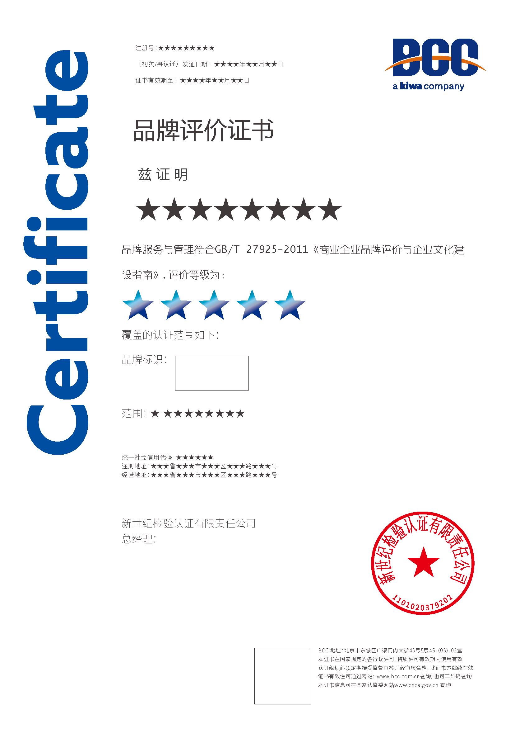 本頁(yè)涉及的認(rèn)證服務(wù)中均有對(duì)應(yīng)的《認(rèn)證實(shí)施規(guī)則》,BCC擁有其最終解釋權(quán)。任何組織及個(gè)人未經(jīng)BCC許可,不得以任何形式全部或部分使用(法律要求除外)認(rèn)證相關(guān)信息。如需獲取相關(guān)實(shí)施規(guī)則請(qǐng)用以下方式聯(lián)系獲?。弘娫?huà):010-58579316 郵箱:fwjs@kiwa.cn