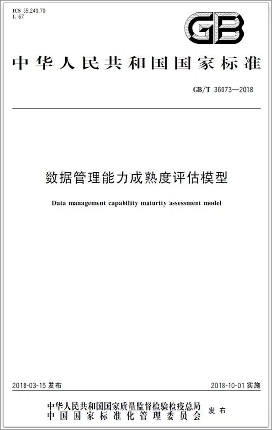 DCMM是《數(shù)據(jù)管理能力成熟度評(píng)估模型》GB/T 36073-2018國家標(biāo)準(zhǔn),英文簡稱:(Data management Capability Maturity Model)。