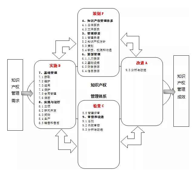 通過確立管理職責、配備管理資源,細化管理目標、編制管理文件,構建文件化的知識產(chǎn)權管理體系,并通過對實施過程的內部審核和管理評審,實現(xiàn)體系的持續(xù)改進,促進企業(yè)創(chuàng)新、改善市場和提升競爭力。